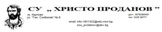СУ „Христо Проданов“ спечели проект по програма Еразъм+ с № 2023-1-BG01-KA122-SCH-000144317 на тема: „Устойчиво европейско бъдеще“ Ключова дейност 1 „Образователна мобилност за граждани“, Сектор „Училищно образование“