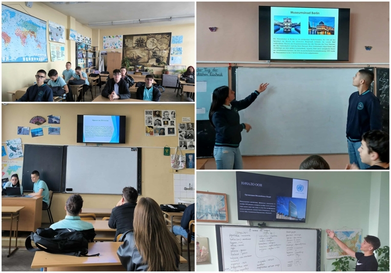 В хода на своята работа учениците се запознаха с целите, структурата и значението на ООН за опазването на мира и стабилността в света. Те подготвиха интересни презентации за обекти на световното наследство на ЮНЕСКО в България, Великобритания, Германия и Русия. Всеки екип представи своя обект на изучавания чужд език, след което го преведе на български – демонстрирайки отлична езикова култура, дигитални умения и глобално мислене.