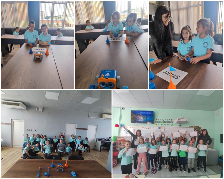 Нашите извънкласни групи „Робо Приключенци“ и „Робо Откриватели“ с ръководители г-жа Арсенова и г-жа Вълкова, работеща с ученици от 1-ви клас, организира забавно и образователно събитие по роботика и програмиране в рамките на Европейската седмица на програмирането. Учениците програмираха миниробота Botley да премине малко трасе и да вкара топка във врата — упражнение, което развива логическо мислене, алгоритмични стъпки и работа в екип.