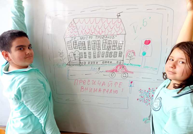 Под този надслов премина тематичния час по БДП на учениците от V „б“ клас, с класен ръководител г-жа Марина Фарфалова. Малките петокласници научиха, че безопасността на движението по пътищата е социална отговорност. Според Световната здравна организация (СЗО) над 1,35 милиона души умират при пътнотранспортни произшествия по света всяка година, като в това число се включват и значителен брой пешеходци, велосипедисти и мотоциклетисти. Над 90% от всички пътнотранспортни произшествия са причинени от грешки на водача – липса на внимание, неподходяща реакция от негова страна или нарушаване на правилата за движение. Тревожен е и фактът, че около 25% от всички смъртни случаи по пътищата в Европа са свързани с шофиране в нетрезво състояние. Учениците проявиха и своето творчество, като нарисуваха на дъската своето безопасно училище, като едновременно с това разбраха, че безопасността на движението по пътищата е споделена социална отговорност, а оказването на влияние върху поведението на участниците в движението, включително пешеходците и велосипедистите е най-добрият начин за подобряване на безопасността на движението.