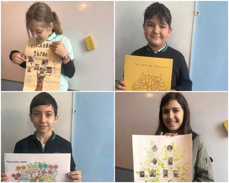 Учениците от 5.а клас, с помощта на г-жа Веселена Тошева, показаха не просто старание, а истинско уважение към миналото, докато работеха по своите проекти за родословно дърво.