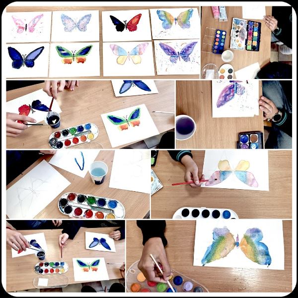 В часовете по изобразително изкуство учениците претвориха идеите си в образи, като рисуваха пеперуда върху буквата W от английската азбука. Така те съчетаха символиката на буквата с художествена интерпретация, развивайки наблюдателност, усет към форма и цвят.